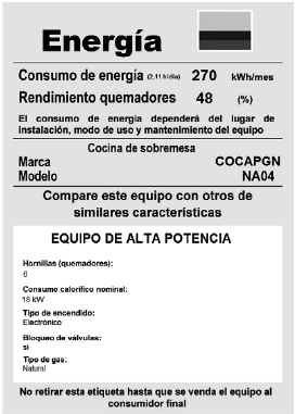Figura 16.5 c. Ejemplo de etiqueta para cocinas de alta potencia”.