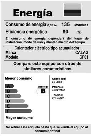 - Lavadoras automáticas, el Factor de Energía expresado en L/kWh/ciclo, así como el consumo de energía mensual expresado en kWh/mes.