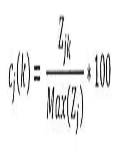Cj(K) Puntuación del proyecto de generación k con respecto al cumplimiento del objetivo j