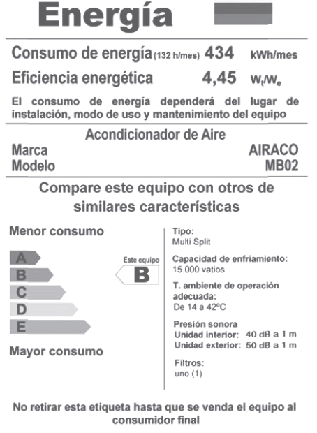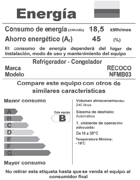 Para cada categoría de equipo se deberá declarar en la etiqueta la clase energética (rango) al que corresponda, de las establecidas en las Tablas 16.3.1.1 a., y 16.3.1.1 b.