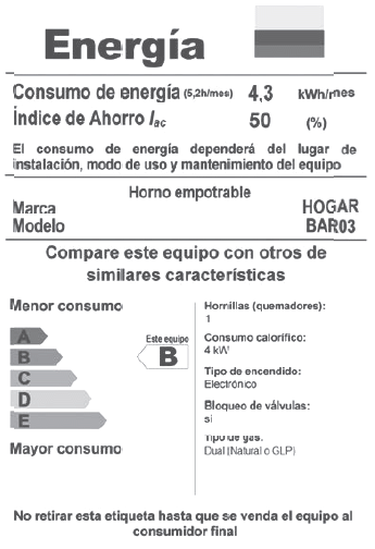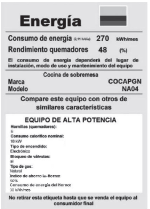 Que los datos contenidos en el etiquetado suministrados por los productores de equipos de uso final de energía eléctrica y gas combustible objeto del presente Reglamento Técnico, se consideran información mínima necesaria para el usuario o consumidor de tales productos.