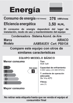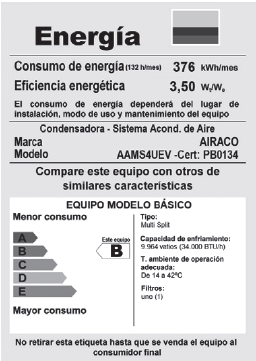 - Acondicionadores de aire con ensambles para múltiples salidas: No hay muestreo, cada solución propuesta, deberá disponer de la información soporte, para el consumo y desempeño energético, etiquetada o a etiquetar, obtenida bajo responsabilidad del productor con base en resultados de ensayo a los modelos base y/o resultados de herramientas de diseño/simulación, propias del fabricante, el productor o de terceros.