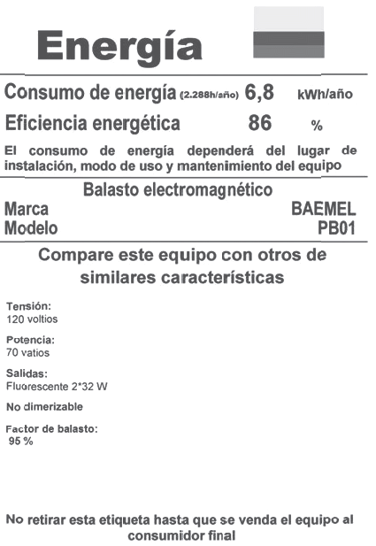 | BALASTOS PARA ILUMINACIÓN | Balastos electromagnéticos para lámparas fluorescentes con potencia nominal igual o superior a 15 vatios. |
