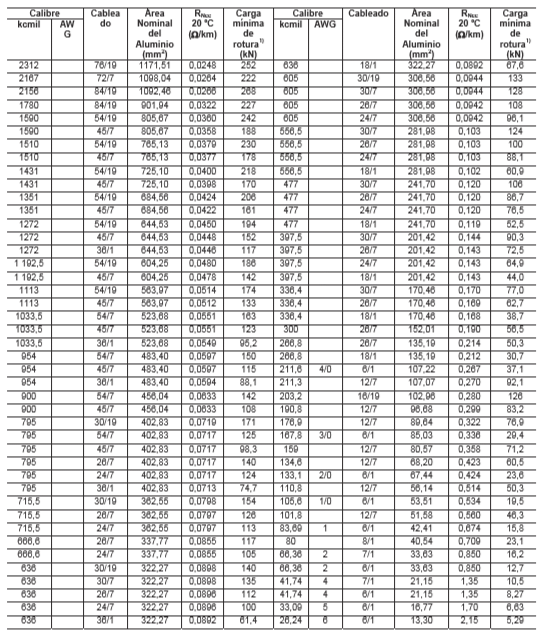 | 5 | Cables de aluminio con alma de acero, para uso eléctrico. |