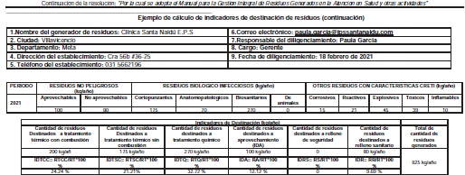 II. Algunos ejemplos de indicadores de destinación para el caso de residuos peligrosos, con base en el tipo de manejo dado al residuo según la clasificación del Registro de generadores de residuos peligrosos reglamentado por la Resolución 1362 de 2007 del hoy Ministerio de Ambiente y Desarrollo Sostenible: