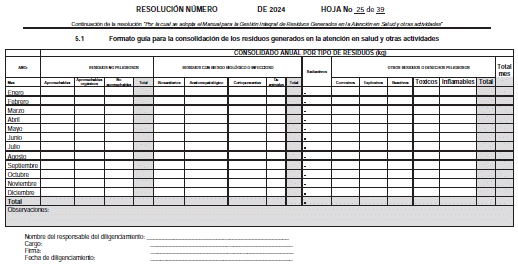 5.1 Formato guía para la consolidación de los residuos generados en la atención en salud y otras actividades.