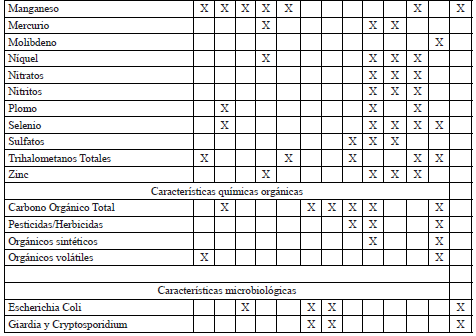 - Calidad de agua en las fuentes de abastecimiento.