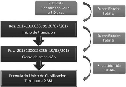- Si la fecha de inicio de operaciones registrada en el RUPS, es posterior al 31 de diciembre de 2014, se habilitará automáticamente la taxonomía que le corresponda en XBRL al momento de certificar el Formulario único de clasificación, como se explica en el anexo técnico de la presente resolución.