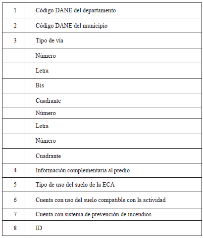 Cumplimiento de los requisitos mínimos municipales: Se debe indicar si la ECA cuenta con (i) el uso del suelo compatible con la actividad de aprovechamiento y (ii) un sistema de prevención y control de incendios. Indicar la información solicitada conforme a las siguientes preguntas y códigos: