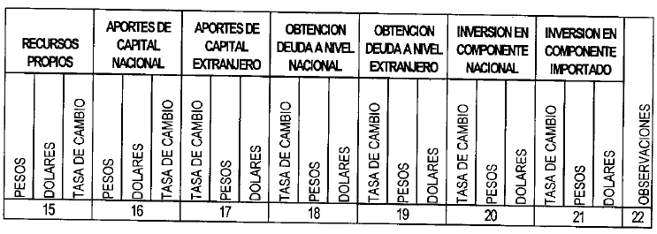 - Pesos: Si en la proyección el valor de la inversión es realizada en componentes extranjeros está dada en pesos colombianos. El diligenciamiento de este campo corresponde a un valor numérico entero (sin decimales).