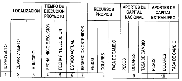 - Dólares: Si en la proyección el valor de la inversión es realizada en componentes extranjeros está dada en dólares. El diligenciamiento de este campo corresponde a un valor numérico entero (sin decimales).