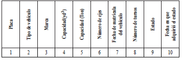 2. Tipo de vehículo. Corresponde al tipo de vehículo de acuerdo con la siguiente codificación: