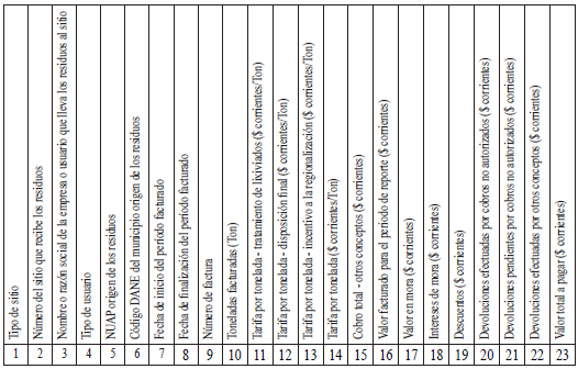 En este reporte de información, los prestadores de las actividades de disposición final y transferencia deben reportar la información de facturación por la operación de todos los sitios de disposición final y de las estaciones de transferencia que estén a su cargo.