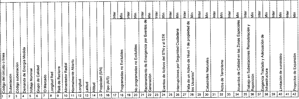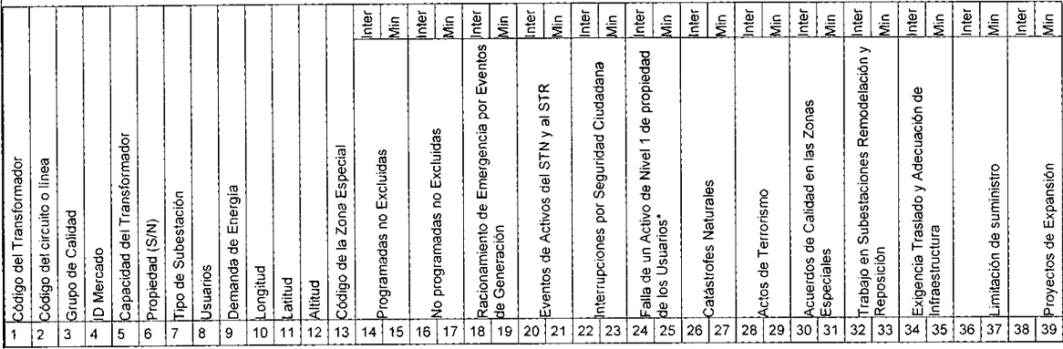 3. Código del Transformador o Alimentador: Identificador asignado por el OR para cada uno de de los transformadores de Distribución, alimentadores o circuitos del sistema que opera.