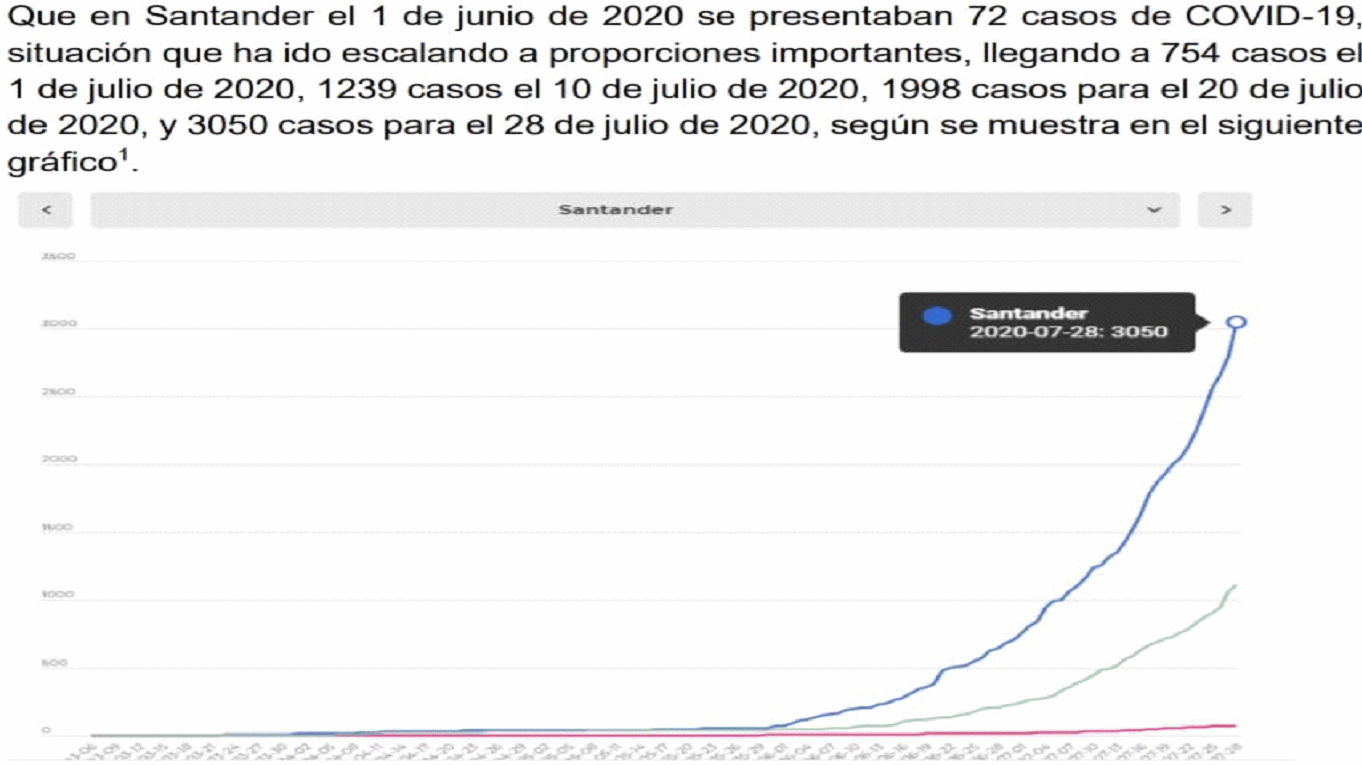 La motivación incluyó no solo la reseña de las normas expedidas con ocasión de la emergencia sino también presupuestos fácticos relacionados con la evolución de los casos en el departamento de Santander y en los municipios de la jurisdicción territorial de la CAS, que incluyen los siguientes datos estadísticos: