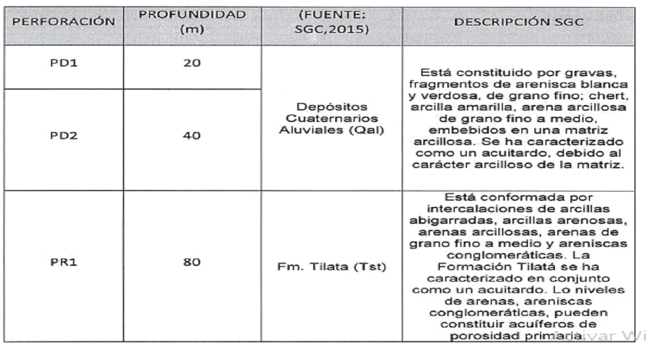 “c) Complementación de la red de monitoreo, a través de la construcción de mínimo tres (3) pozos de monitoreo, dos (2) ubicados hacia la zona de descarga (depósitos cuaternarios), uno donde la rejilla intercepte el nivel freático más superficial y el otro a una mayor profundad, con el fin de identificar la presencia de zonas con presiones más altas a la atmosférica y el restante aguas arriba en la zona cerca al pozo PM8 y del área de recarga de la Fm. Cacho. Es importante