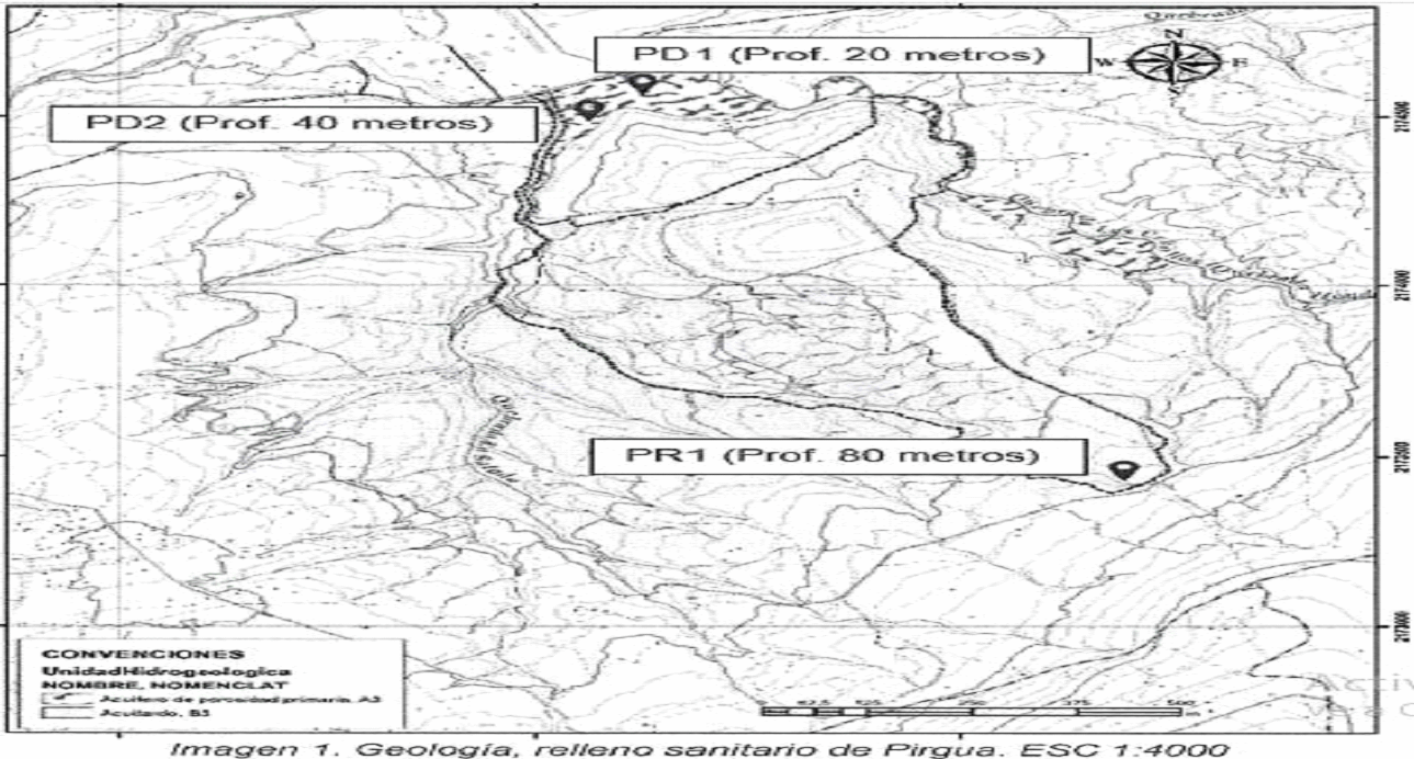 del relleno sanitario de Pirgua pone en peligro el delicado equilibrio del ecosistema subterráneo. La posición del relleno (por la condición geográfica) representa un riesgo moderado y bajo sobre el acuífero de Tunja, mientras que la contaminación de lixiviados de la quebrada de las cebollas implica un riesgo alto.