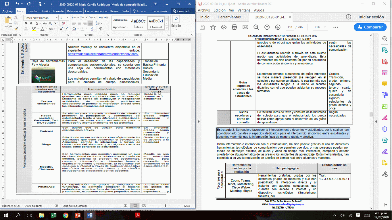 5. Entre el 30 de marzo y el 19 de abril del 2020, se decretó el periodo de vacaciones para los estudiantes, por lo que fueron reanudadas las actividades académicas, a partir del 22 de abril de mismo año, de manera no presencial, haciendo uso de plataformas virtuales.