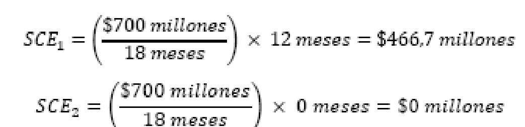 Dado que a la fecha faltan 12 meses para la terminación de la obra, el número de meses usados para el cálculo de los Saldos de Contratos en Ejecución para cada Período es el siguiente: