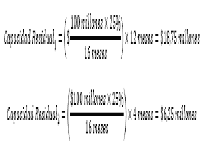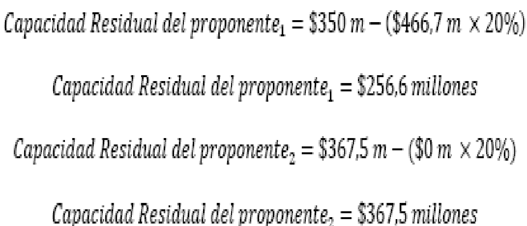 La Capacidad Residual del Proceso de Contratación debe en consecuencia ser calculada así: