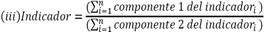 La siguiente es la fórmula aplicable para los indicadores que son índices en la opción 1: