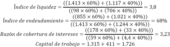 Los siguientes son dos ejemplos que ilustran el cálculo de los indicadores de capacidad financiera de un oferente plural siguiendo las recomendaciones anteriormente expuestas: