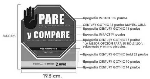 f) El consumidor tiene derecho a recibir información permanente sobre el sistema de Precio por Unidad de Medida. Con tal propósito, para los almacenes de autoservicio en el primer año de vigencia de la presente instrucción, deberán colocar en cada lineal de productos, por lo menos un letrero en cada una de sus esquinas, con las dimensiones, colores, tipo de letra y diseño señalado en el anexo número 1 de la presente Circular. Transcurrido el primer año de vigencia, podrá colocarse un letrero por cada tres (3) lineales o fracción, en ambas esquinas, con las mismas características del anexo número 1 de la presente Circular. Para las ventas a distancia, los catálogos, folletos o canal de comercio electrónico, deberá incluirse de forma ostensiblemente visible por lo menos un letrero con los colores, tipo de letra y diseño señalado en el anexo número 1 de la presente circular.