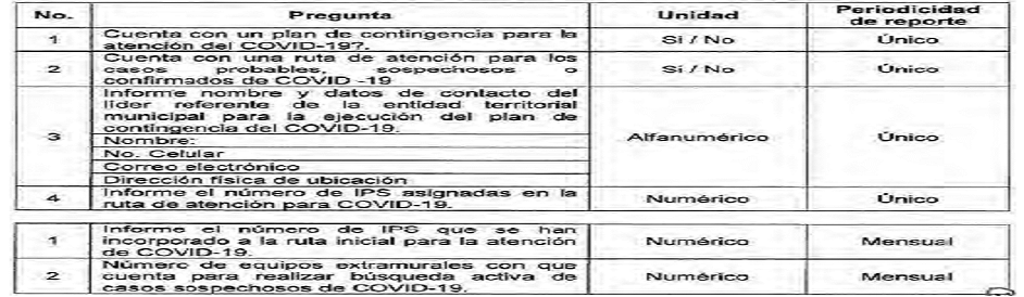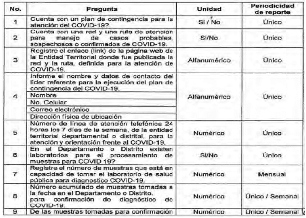 En este sentido, el primer reporte deberá ser realizado dentro de los dos (2) días calendario siguientes de la publicación de la presente Circular Externa y se refiere a las preguntas identificadas como ÚNICAS. Los demás reportes de información deberán ser enviados según la periodicidad indicada.