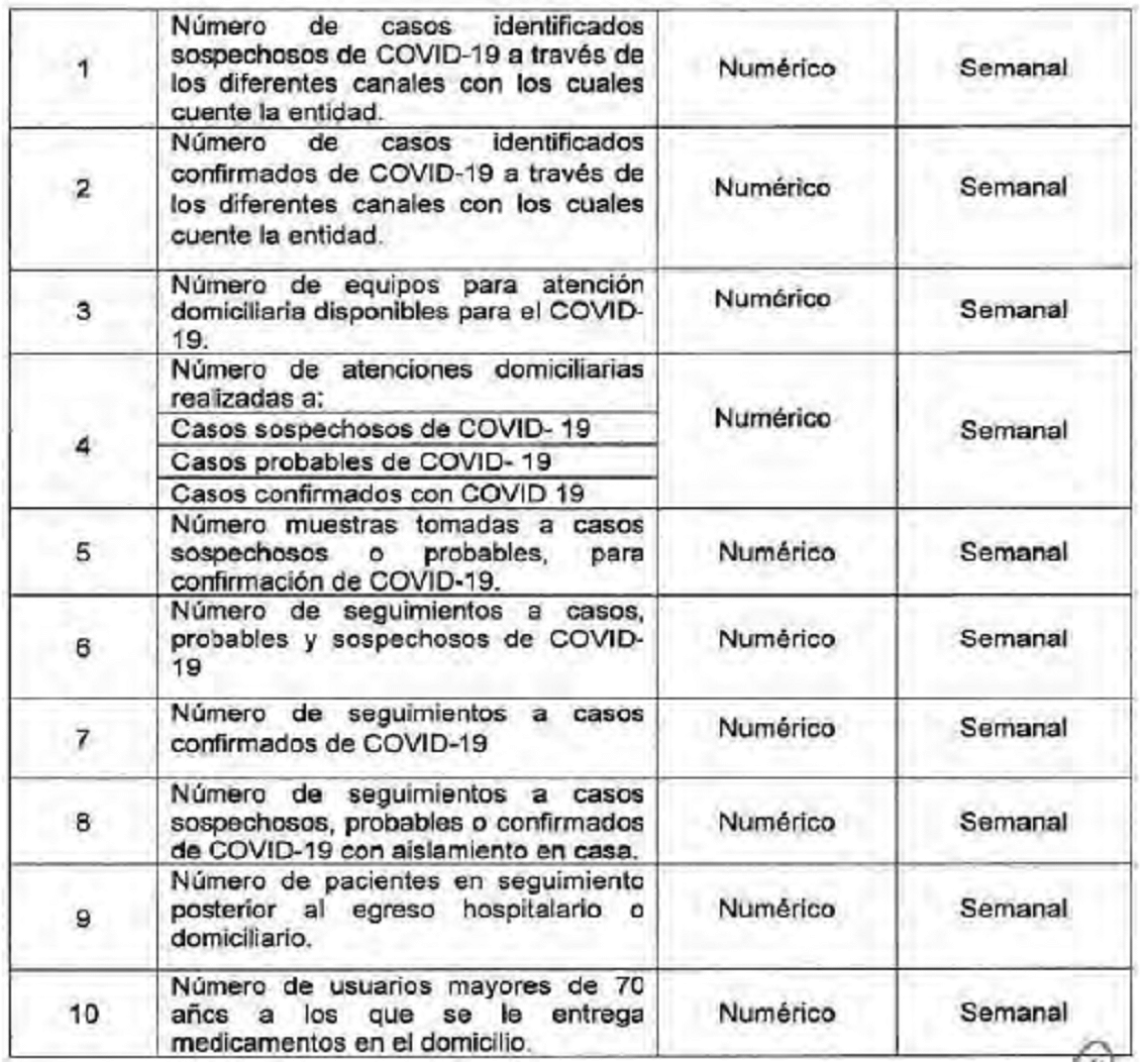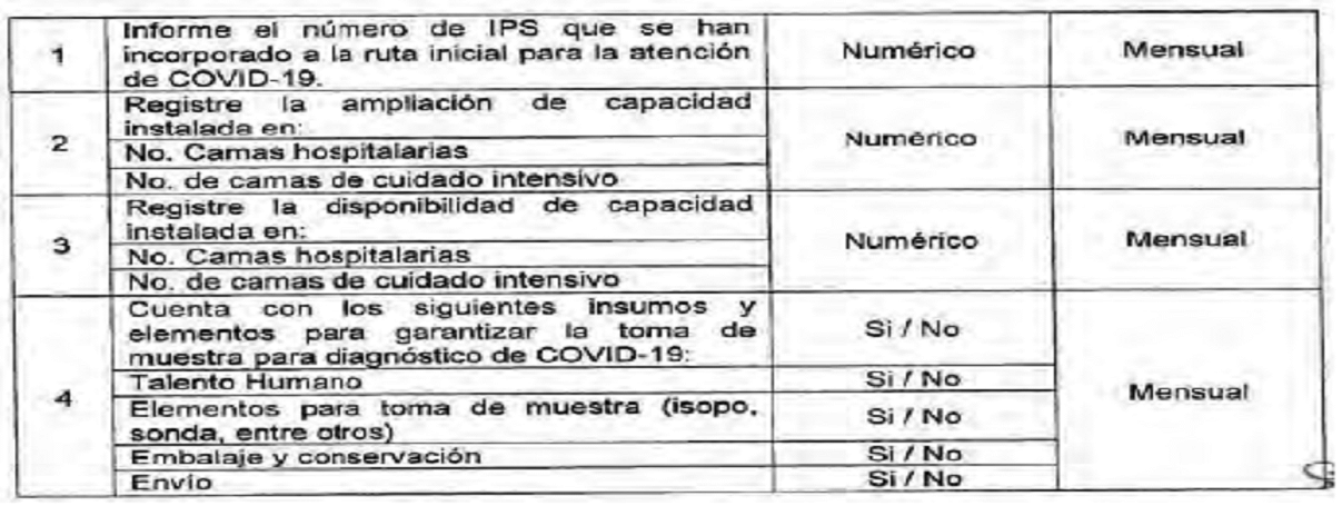 | PARA: | GOBERNACIONES, ALCALDIAS, SECRETARIAS DEPARTAMENTALES, DISTRITALES Y LOCALES DE SALUD, GERENTES DE INSTITUCIONES PRESTADORAS DE SERVICIOS DE SALUD - IPS ASIGNADAS PARA LA ATENCIÓN DE COVID-19, ENTIDADES ADMINISTRADORAS DE PLANES DE BENEFICIOS - EAPB Y DEMAS ENTIDADES DEL SISTEMA GENERAL DE SEGURIDAD SOCIAL EN SALUD RELACIONADAS CON LA PRESTACIÓN DE SERVICIOS DE SALUD. |
