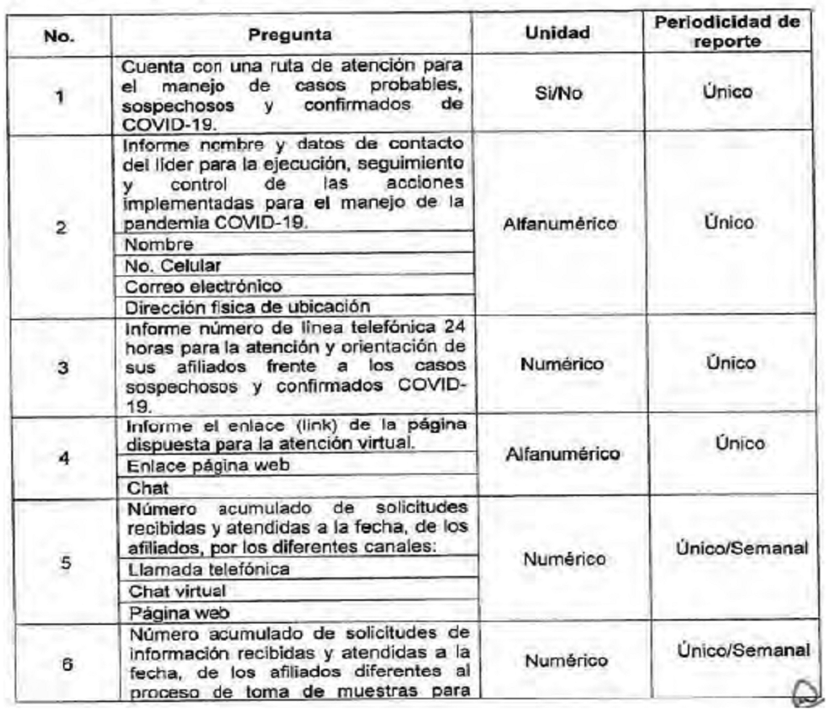 TIPO DE ENTIDAD A LA QUE APLICA EL REPORTE: Entidades Administradora de Planes de Beneficios - EAPB PERIODICIDAD: Único y semanal