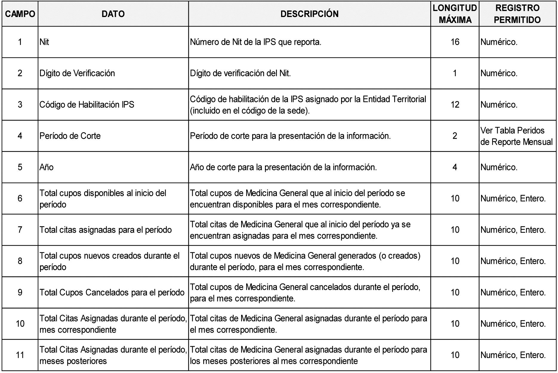 – Total citas asignadas para el período (Campo 10)