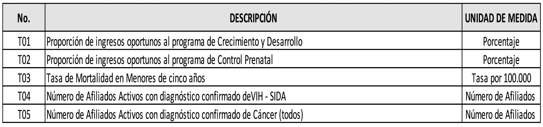 Los indicadores corresponden únicamente a la EPS. Tener en cuenta la periodicidad trimestral del reporte de este archivo. (Ver tabla Periodos de Reporte Trimestral).
