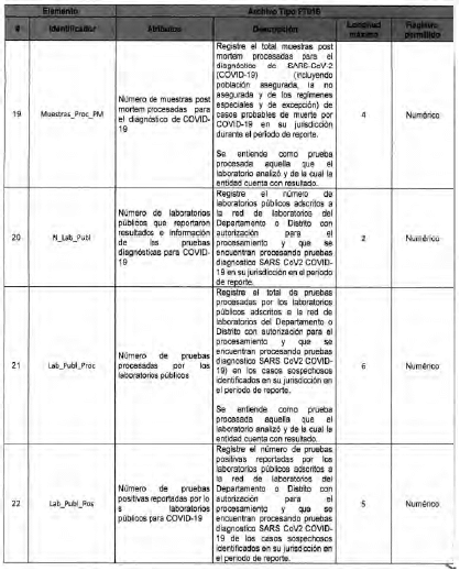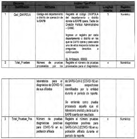 Anexo Técnico Archivo tipo PT016 - Seguimiento a la detección de casis de COVID-19 en las Entidades Territoriales