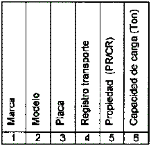 6. Capacidad de carga (Ton): Corresponde a la capacidad de carga del vehículo repartidor en toneladas métricas.