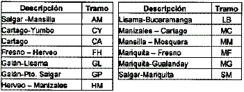 1. Línea: Corresponde al código del tramo de acuerdo con la siguiente tabla: