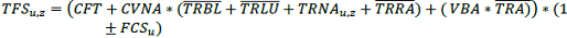 A modo particular, con respecto al valor de las toneladas de recolección que se le asigna a cada suscriptor no aforado (TRNAU,Z)[8], este se calcula a través de una fórmula que en términos generales toma la cantidad total de residuos sólidos producidos en el Área de Prestación del Servicio (o municipio) por parte de los suscriptores no aforados y la divide en la cantidad de suscriptores no aforados; a su vez, esta fórmula asigna esta cantidad de residuos considerando el tipo de suscriptor (residencial, pequeño productor no residencial, e inmuebles desocupados) a través de una factor denominado “factor de producción”.