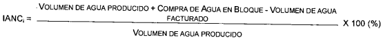 Una vez aclarado lo anterior, nos permitimos informarle que para la determinación de las pérdidas de agua (técnicas y comerciales) en los sistemas de acueducto, la Resolución CRA 287 de 2004 incluyó en sus fórmulas, el Indice de Agua No Contabilizada — IANC, el cual debe ser calculado por los prestadores tal y como se presenta a continuación: