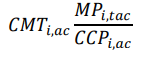 En ambos casos el valor del MP,,ac es el monto por pagar en el período i por tasas ambientales para acueducto, de acuerdo con la normativa vigente. La diferencia radica en el divisor, ya que en grandes prestadores se utiliza el Consumo Corregido por Pérdidas - CCP, y para pequeños prestadores se utiliza el Volumen Facturado. Ambos valores corresponden al año de la vigencia de cobro de la Tasa por Uso de Aguas, por parte de la correspondiente autoridad ambiental. Si se tienen varias captaciones de agua en diferentes fuentes, el MPi tac será la sumatoria del cobro realizado por cada una de las captaciones.