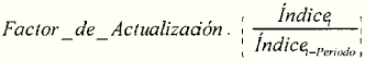 El cálculo del factor de actualización para los costos de referencia conforme a cualquiera de los indicadores, está dado por la siguiente fórmula: