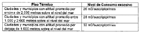 - Mediante la Resolución CRA 493 de 2010 "Por la cual se adoptan medidas para promover el uso eficiente y ahorro del agua y desincentivar su consumo excesivo", posteriormente modificada por la Resolución CRA 695 de 2014, se implementó la aplicación del desincentivo sobre los consumos excesivos de agua potable para los usuarios residenciales que se encuentren por encima de los siguientes niveles de consumo: