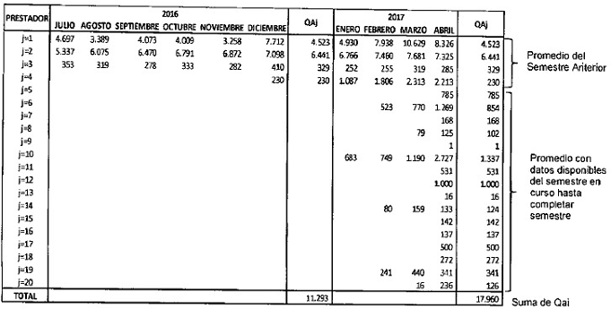 ii. Con la publicación de abril de 2017 que Incluye la información de nuevas personas prestadoras de aprovechamiento que iniciaron reporte ante el SUI, se deberá proceder a la actualización de la suma promedio QAj. Para ello, se debe tener en cuenta la disponibilidad de la información según los periodos definidos para el promedio semestral de cada una de las personas prestadoras j, así: a) para aquellas personas prestadoras que tienen reportado al menos un mes asociado al semestre de julio a diciembre de 2016, se deberá usar dicha información para definir el QAj y el mismo quedará fijo hasta junio de 2017; b) para aquellas personas prestadoras con información reportada únicamente para el semestre en curso (enero a abril de 2017) se deberá tomar dicha información para estimar el QAj asociado, y mes a mes incluir, para el cálculo promedio, la información reportada hasta terminar el semestre, momento en el cual 1 el QAj quedará fijo hasta diciembre de 2017: