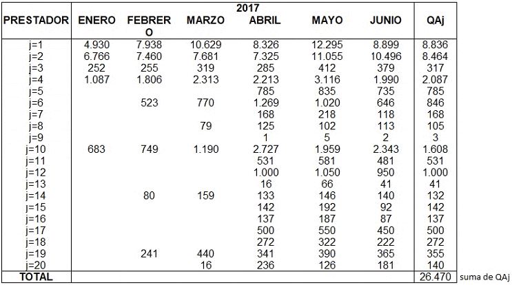 En ese sentido, el cálculo del TRA deberá tener en cuenta la información de cada una de las personas prestadoras de la actividad de aprovechamiento (QAj) disponible y reportada al SUI, tanto en diciembre como en los meses siguientes del primer semestre de 2017, como se muestra a continuación, a manera de ejemplo, con base en la información remitida en su comunicación: