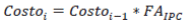 | Factor de Actualización por IPC, el cual podrá ser aplicado cada vez que se acumule una variación de por lo menos el tres por ciento (3%) en el Índice de Precios al Consumidor (IPC) reportado por el DANE. Este factor será calculado de la siguiente manera: |
