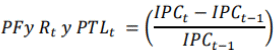 | Índice combinado de precios al consumidor y combustible, en el período t, donde “t” es el mes en el cual se realiza la actualización y “t-1” corresponde al mes en el que se hizo la última actualización de acuerdo con lo señalado en el Artículo 125 de la Ley 142 de 1994. |