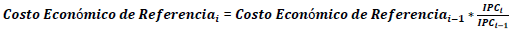 Costo Económico de Referencia/: Costo económico de referencia (CMA, CMO, CMI) actualizado para el período i de los servicios públicos domiciliarios de acueducto y alcantarillado, expresado en términos unitarios.