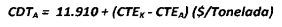 | CTEA: | Costo máximo a reconocer, por tonelada transportada en el tramo excedente hasta el sitio de aprovechamiento ($/Tonelada). |