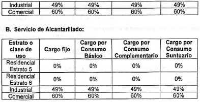 En este cuadro se puede identificar el valor de los Costos Económicos de Referencia que resultan de aplicar la metodología tarifaria expedida por esta Comisión de regulación, debido a que como a los usuarios del estrato 4 y del uso oficial no le aplican descuentos por subsidios ni incrementos por el cobro de contribuciones, entonces a estos usuarios se le factura el mismo valor de los Costos Económicos de Referencia que resultan de la aplicación de la metodología tarifaria expedida por la Comisión de Regulación.