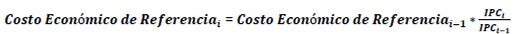 Costo económico de referencia (CMA, CMO, CMI) actualizado para el período i de los servicios públicos domiciliarios de acueducto y alcantarillado, expresado en términos unitarios.