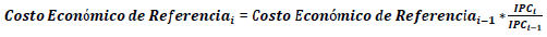Costo económico de referencia (CMA, CMO, CMI) actualizado para el período i de los servicios públicos domiciliarios de acueducto y alcantarillado, expresado en términos unitarios.