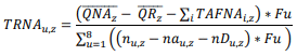 Por otro lado, en relación con la variable Toneladas de Residuos No Aprovechables (TRNA), vale la pena recordar que se encuentra establecida en el artículo 5.3.2.3.3.(5) de la Resolución CRA 943 de 2021, por medio de la siguiente fórmula: